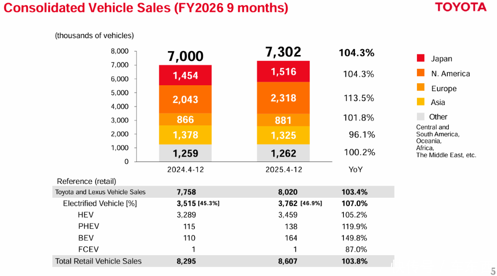 ▲丰田2026财年前三季度销量