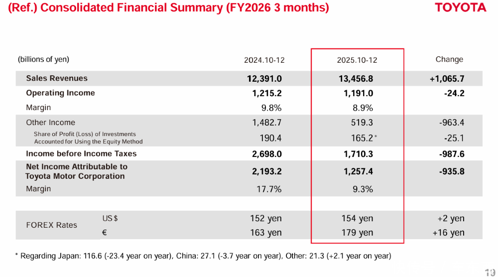 ▲丰田2026财年第三季度财务数据